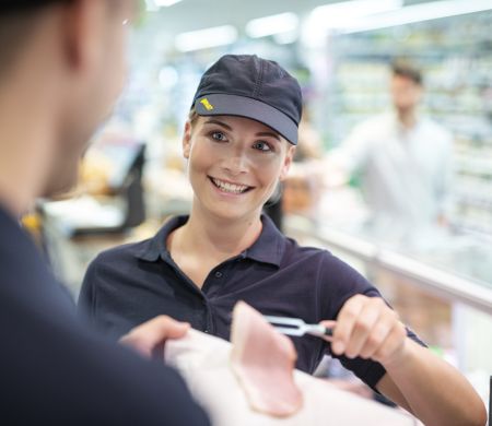 Ob Fleisch-, Wurst- oder Käseprodukte sowie alle Brot- und Gebäckwaren – an der Feinkostbedienungstheke kommen alle Produkte zu 100 % aus Österreich. Schmackhafte und frische Produkte, bei denen man die Heimat ab dem ersten Bissen schmeckt.